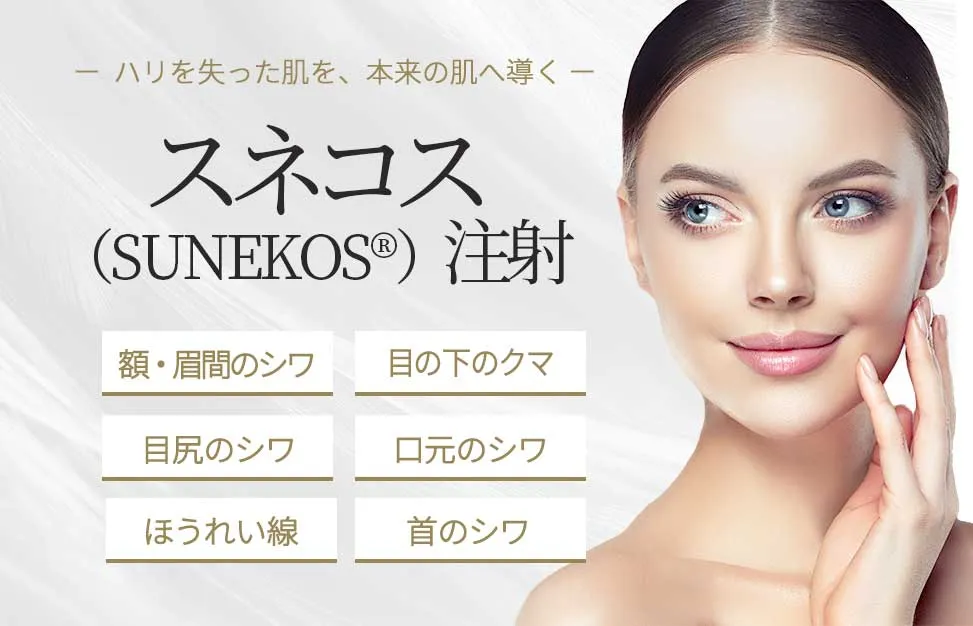 スネコス(SUNEKOS®)注射は、シワやたるみ、ハリや弾力の改善に非常に高い効果を発揮する治療です。