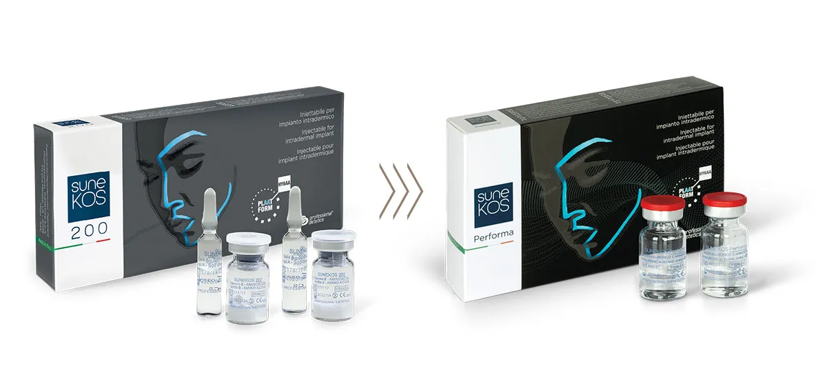 従来品と比較すると、「スネコス200」は100mgのアミノ酸に20mgの低分子の非架橋ヒアルロン酸3mLを溶解して使用するのに対して、「スネコスパフォルマ」は128mgのアミノ酸と35mgの低分子ヒアルロン酸があらかじめ混合されおり、アミノ酸全体の量も100mgから128mgと28%増量、1mLあたりですと33.3mgから36.6mgへ9%もUPされました。