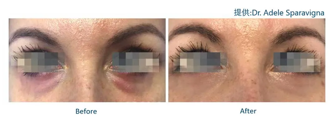 非架橋のスネコスを注入することで、薄くなった皮膚に厚みやハリが生まれ、皮膚から透けて見えていた毛細血管を見えなくし「青クマ」が改善されます。