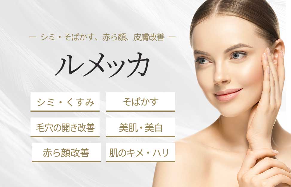 ルメッカはシミやそばかす、くすみ、顔の赤み(血管病変)などの改善を叶える新しいフォトフェイシャル治療(光治療)です。