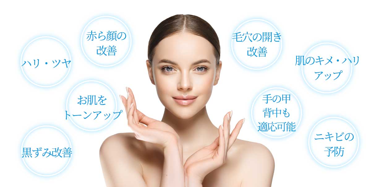 肌質改善の効果もあり、他の光治療(IPL)よりはるかに高いトップレベルのピークパワーにより、1〜3回の施術で肌のハリ・ツヤ・潤いが改善され、肌トーンがアップするなど、短い期間・少ない照射回数で効果を実感出来ることが最大の特徴です。