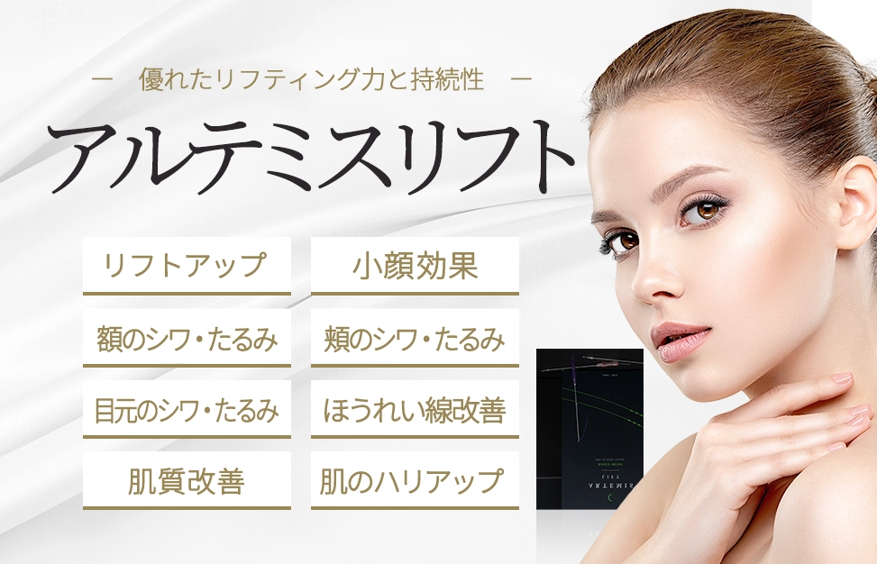 ARTEMIS LIFT(アルテミスリフト)は「第4世代の糸リフト」として韓国と日本の医師により共同開発されました。糸リフトの中で人気の高いテスリフトとボブリフトの利点である持続力と安全性の両方を実現した理想的なハイブリット糸リフトです。