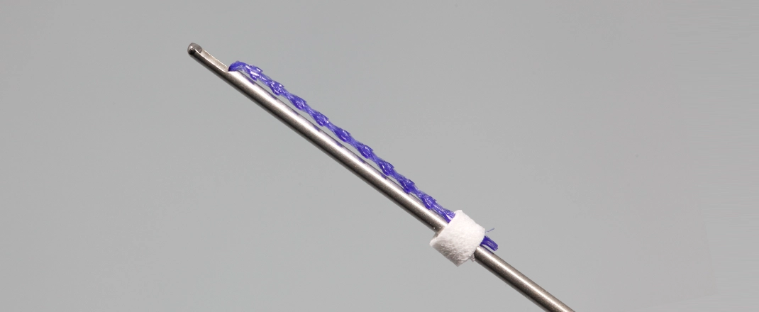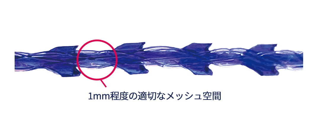 メッシュ構造のため糸の一本一本が結合されており、ほつれが起こることがないので、糸の末端を折り返して挿入するなどの工程が必要なくなり、よりスピーディーな処置が可能となりました。