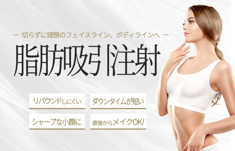 そんな悩みに応えるのが脂肪吸引注射。脂肪をピンポイントで減らしながら、美しいボディラインへと導くことが可能です。